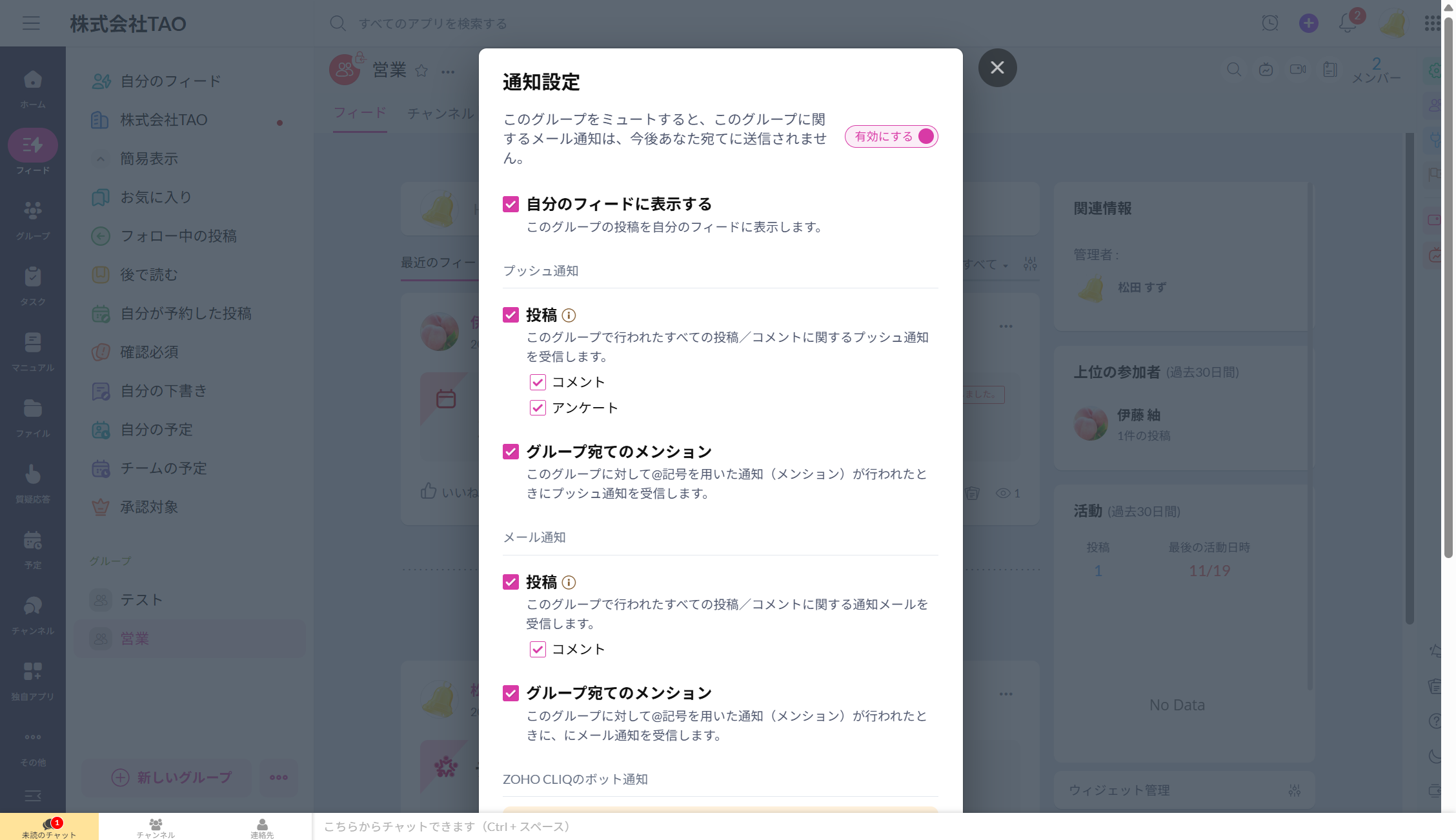 【Zoho Connect】グループに関する通知管理