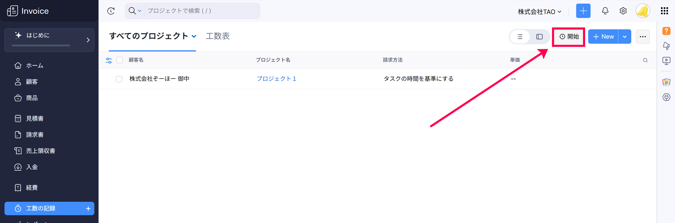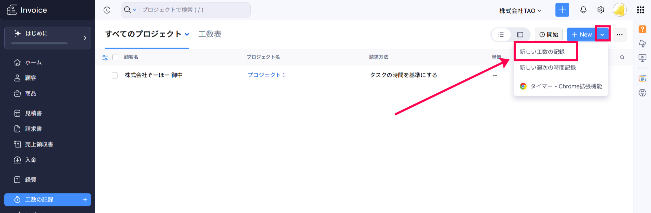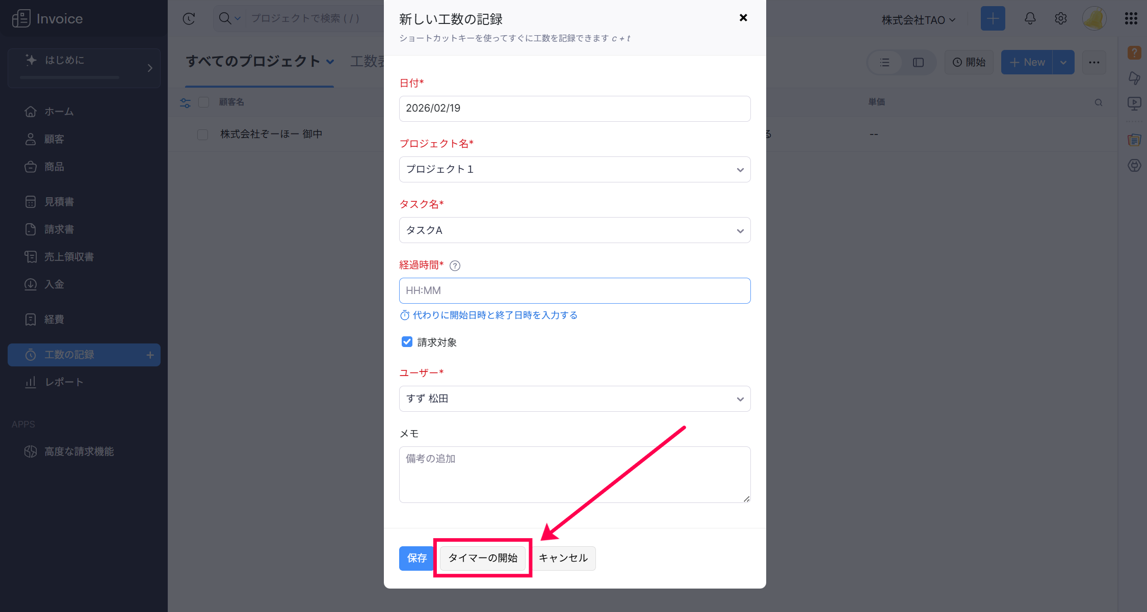 【Zoho Invoice】 タイマーを使用して工数を記録する方法