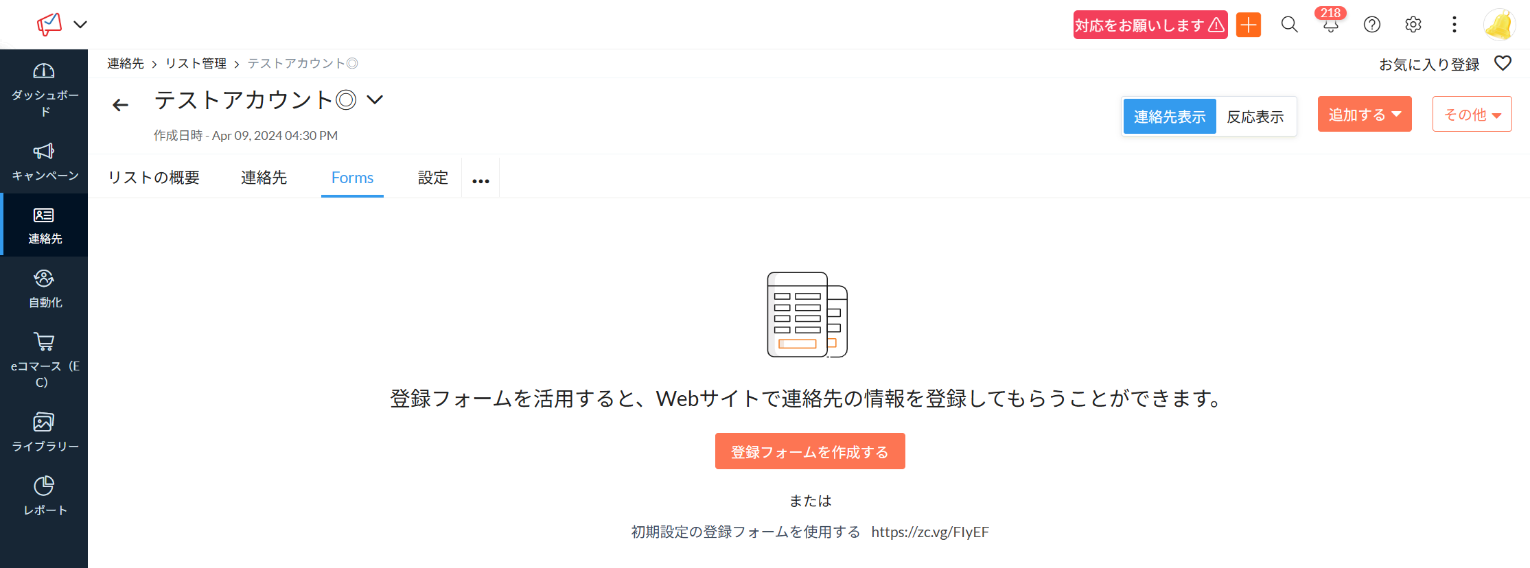 すでにリストに登録フォームが関連付けられている場合には、今一度確認を行いましょう。