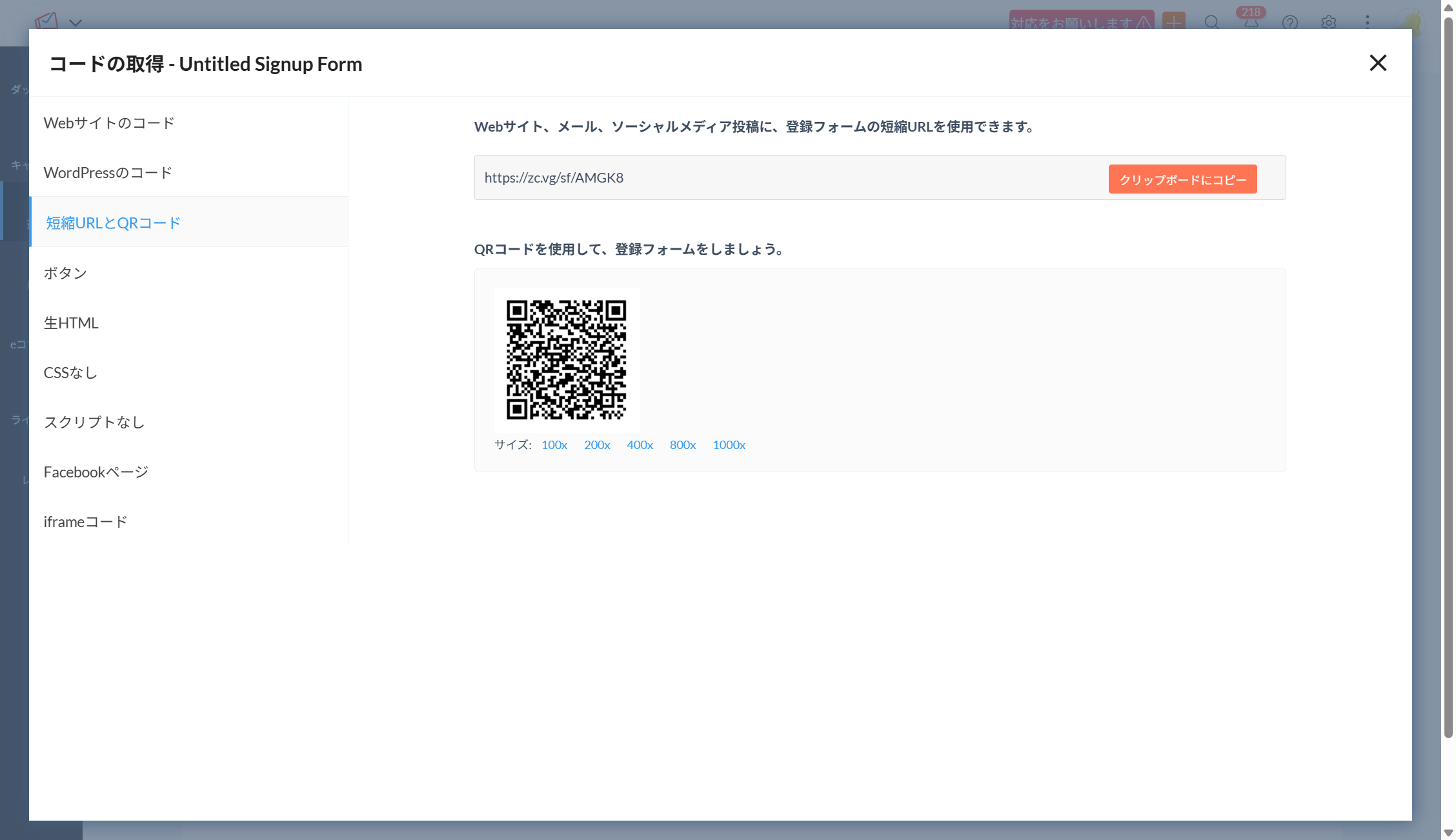 2)登録フォームの作成(※すでに登録フォームが作成されている場合には、4まで進んでください)