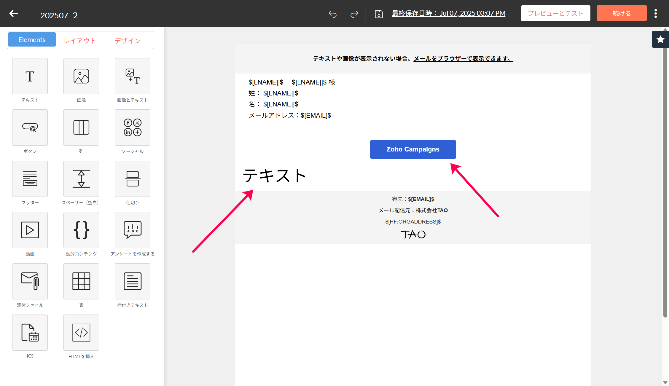 【Zoho Campaigns】メールの本文にテキストリンクを設定する方法