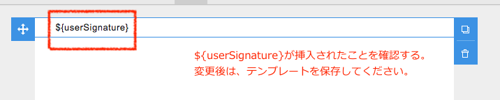 ただし、メールテンプレートを使う場合は、事前にテンプレートで署名を表示する設定をする必要があります。