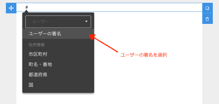 差し込み項目を使用するので、「#」を入力します。