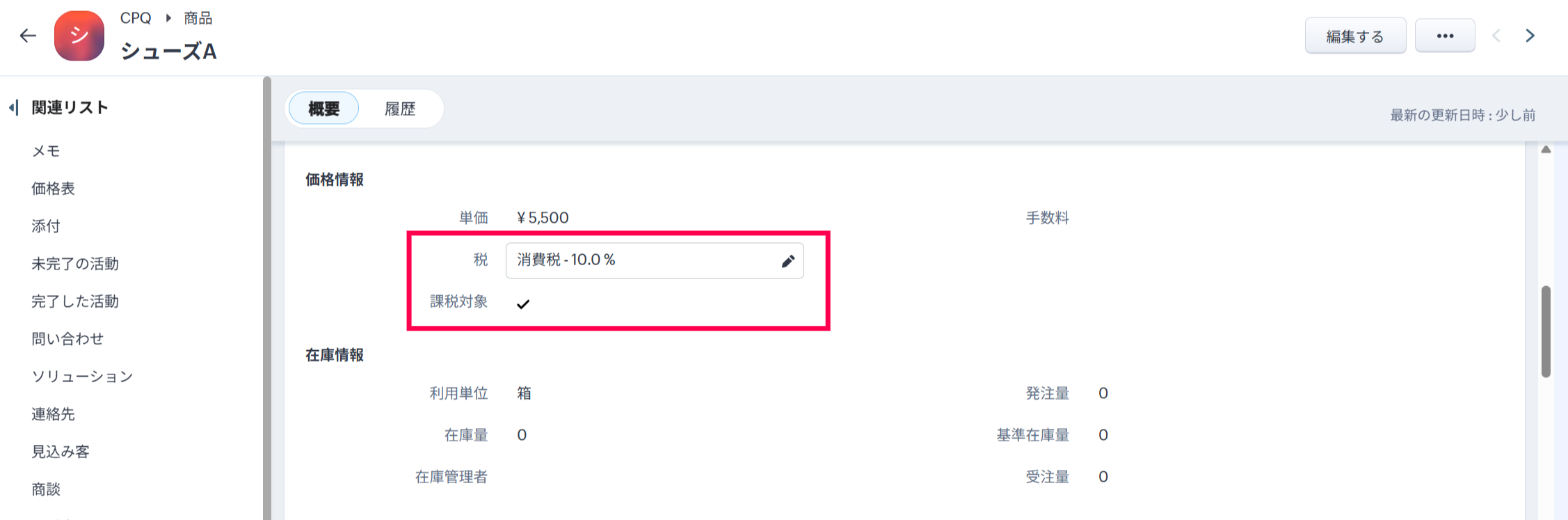 ※「課税対象」項目を有効化していない場合、見積書などの作成時に商品に税を関連付けられなくなります。
