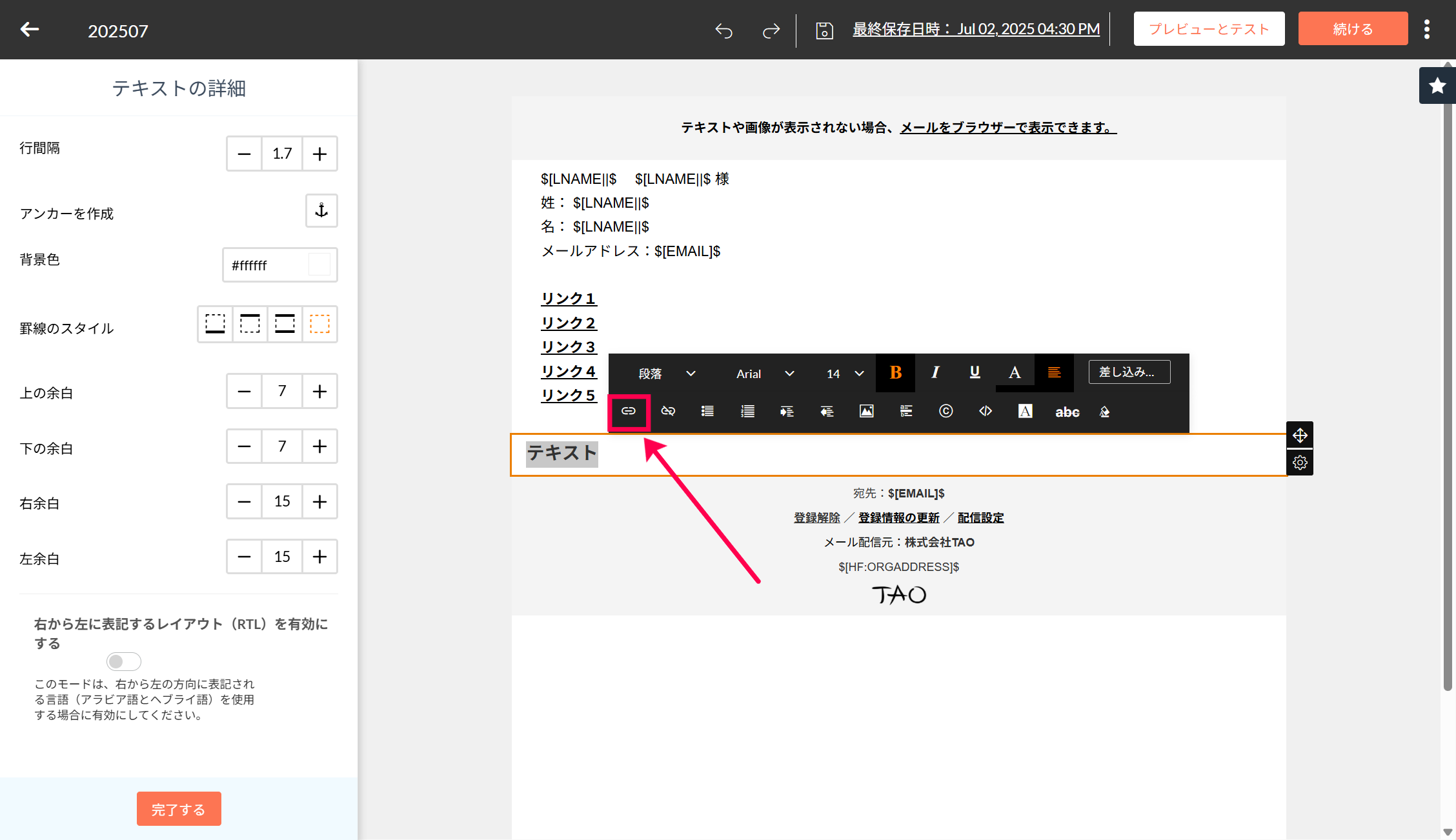 【Zoho Campaigns】メールの本文にテキストリンクを設定する方法