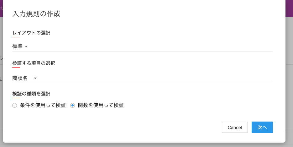入力規則の設定で、「関数を使用して検証」が選択できます。