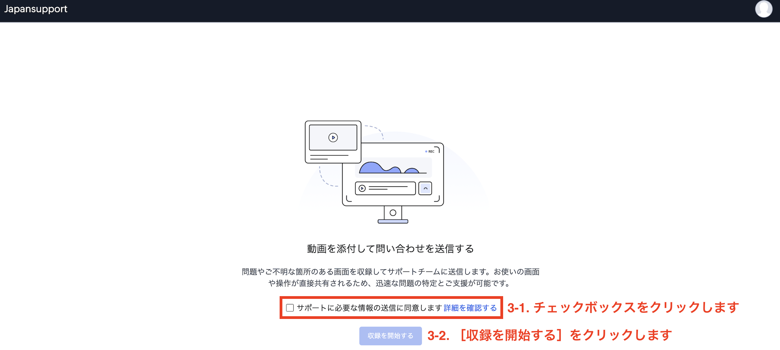 【Zoho Desk】カスタムドメイン利用中の環境で、画面の収録をサポート窓口へ提供する