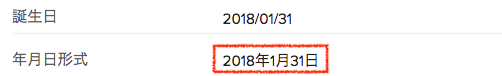 下記は連絡先の誕生日を年月日形式で数式項目で表示させるサンプルです。