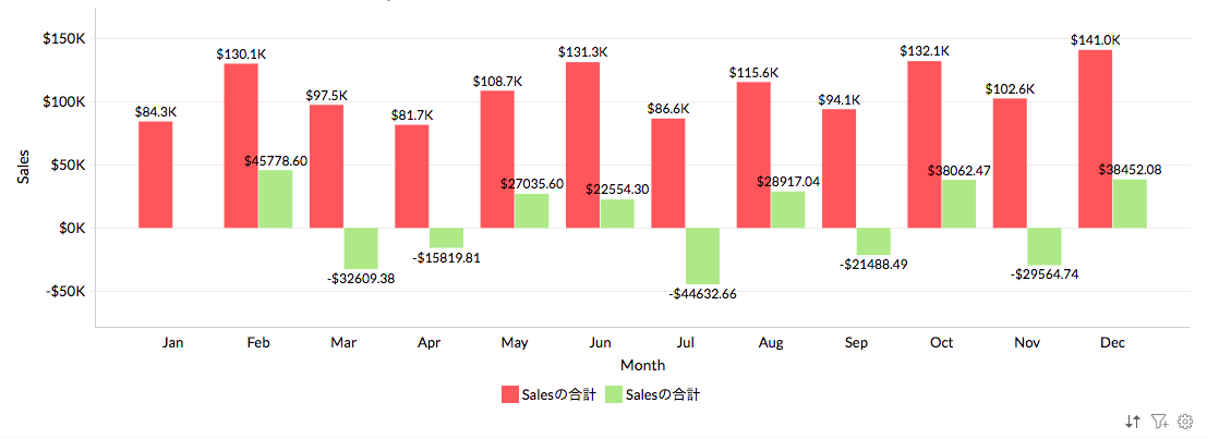 【Zoho Analytics】 グラフに前月との差分を表示させる方法