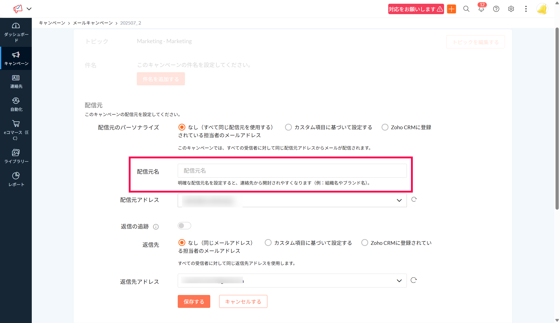 【Zoho Campaigns】送信するキャンペーンの送信元をメールアドレスではなく、企業名表示に設定できますか?