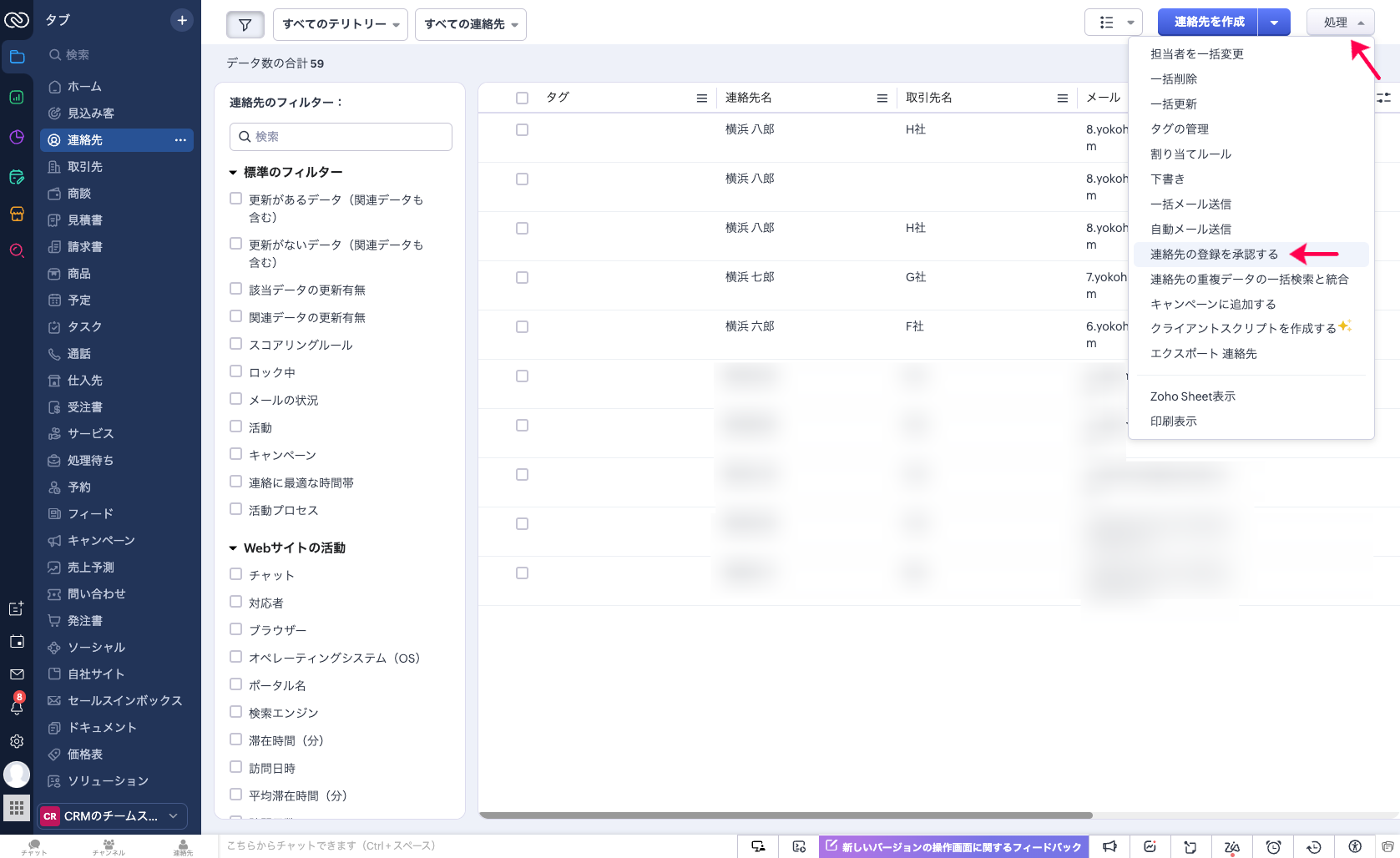 1. データ一覧画面の右側の「処理」>「登録を承認する」をクリックしてください。