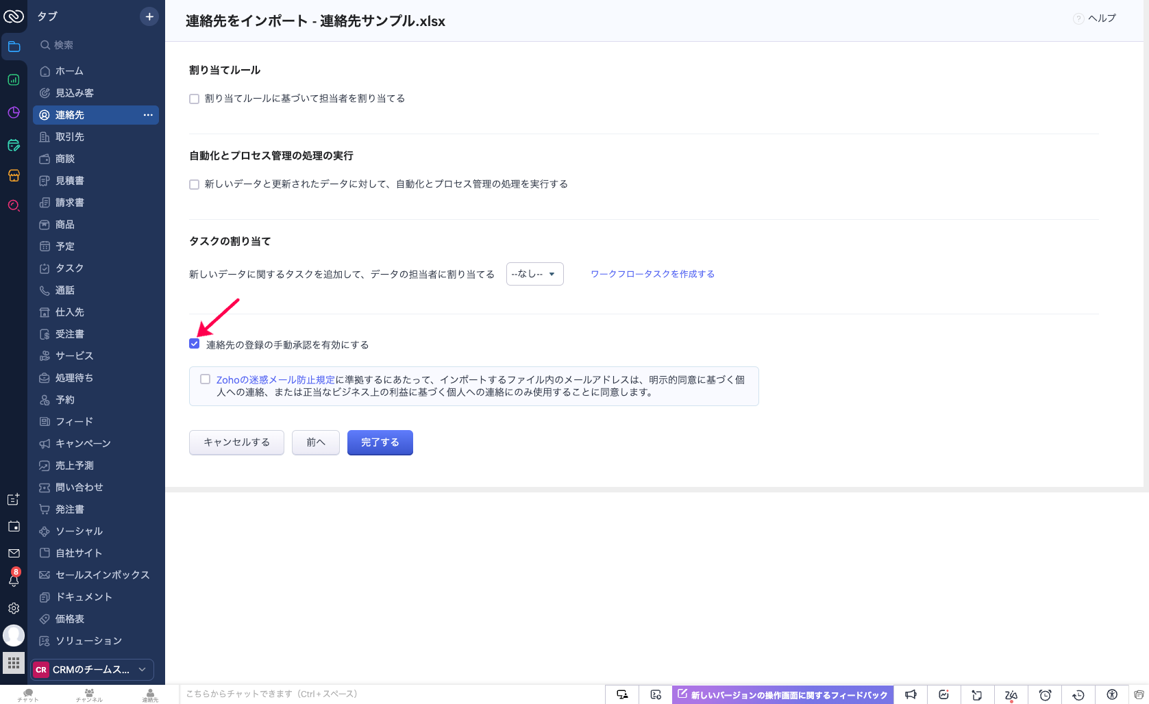 【Zoho CRM】インポートが完了しているのにデータが一覧画面に表示されない際の確認箇所