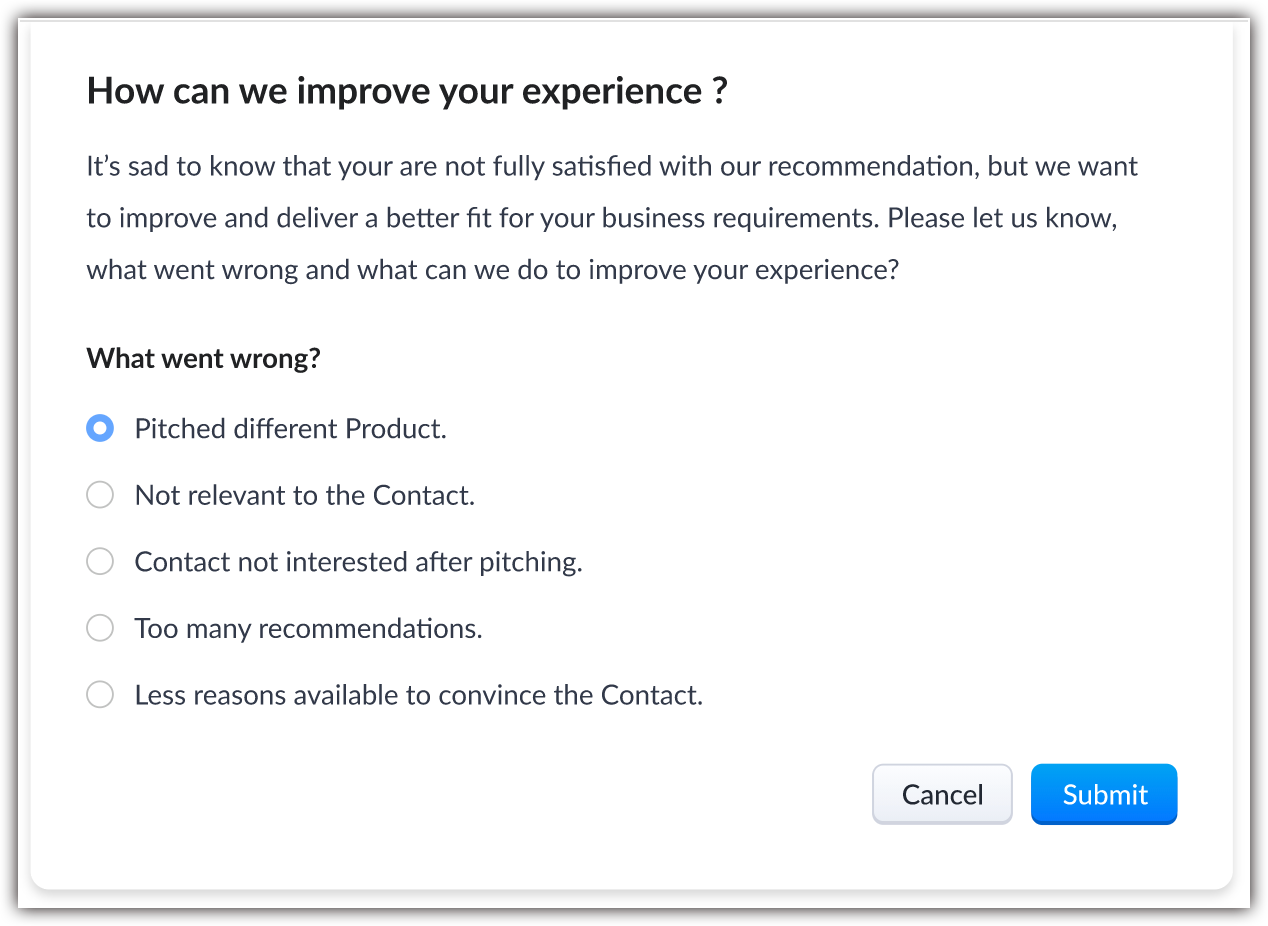 【Zoho CRM】Ziaのレコメンド機能に関するアップデートのお知らせ:レコメンドに対するフィードバック機能が追加されました。