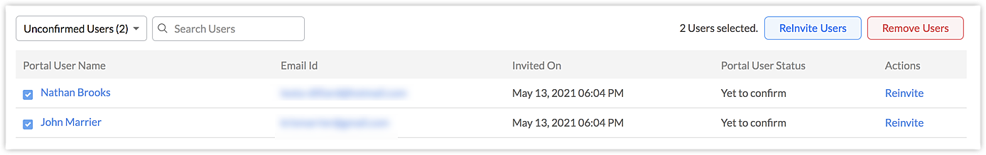 - ポータルユーザーの再招待・有効化・削除 - 未認証のユーザーは再招待もしくは削除できます。同様に、無効なユーザーを再度有効化することもできます。