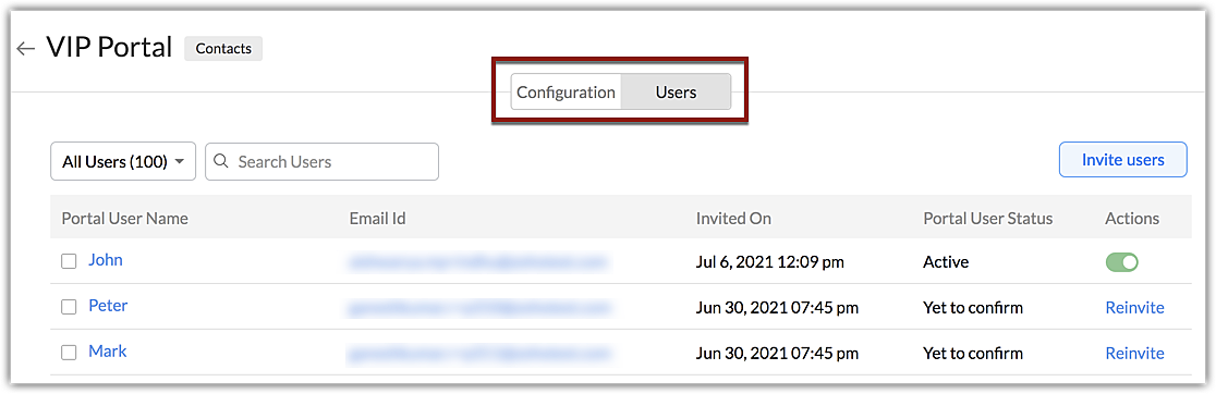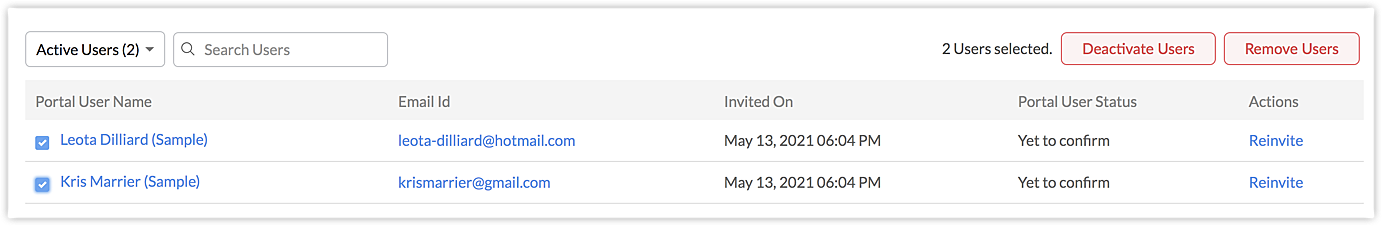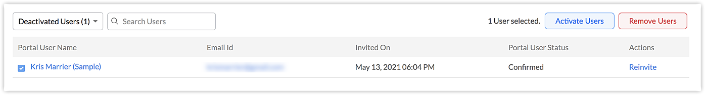 - ユーザーの無効化- 有効なポータルユーザーを無効もしくはポータルから削除できます。