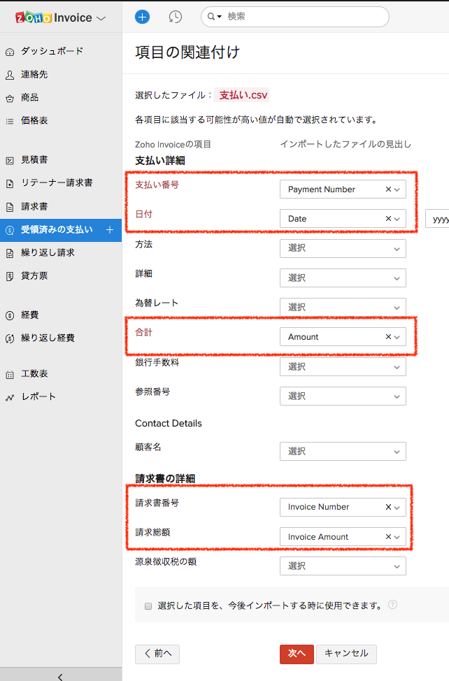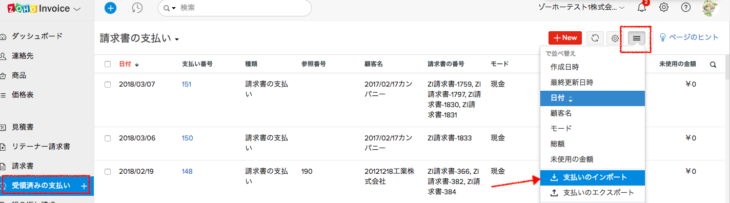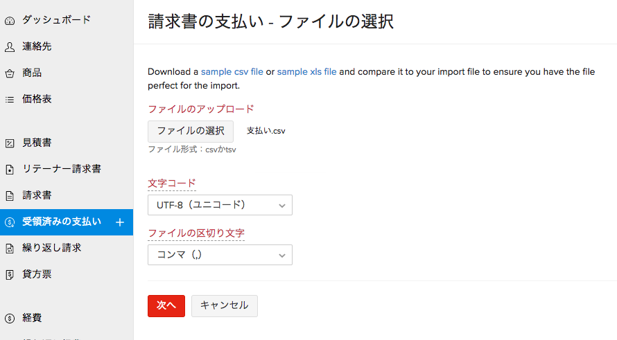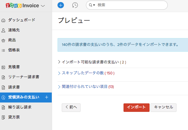 「受領済みの支払い」にデータをインポートすることで、