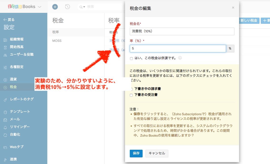 【Zoho Invoice】 税率の変更