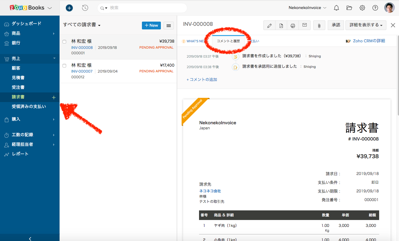 承認フローの有効化 英文ヘルプ参考:https://www.zoho.com/invoice/help/transaction-approval/ 承認ワークフローを設定する最初の手順は、承認を有効にすることです。 組織内のユーザーが作成した取引書類の承認が始まります。 承認を有効化手順: ・右上隅の歯車アイコンをクリックし、[各種設定]を選択します。 ・「承認」を見つけることができます。 ・「承認の有効化」にします。 承認の設定 承認を有効にすると、承認設定を設定できます。 ...