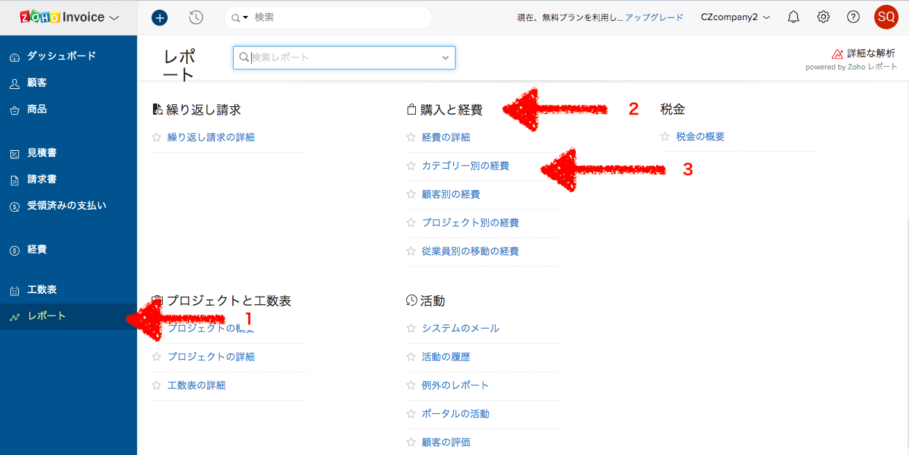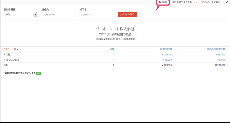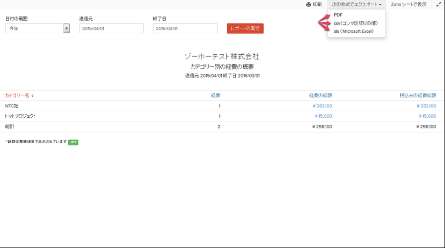 【Zoho Invoice】 カテゴリー別の経費報告書