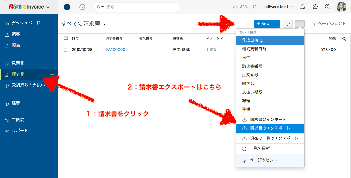 【Zoho Invoice】 請求書をcsv形式でエクスポート