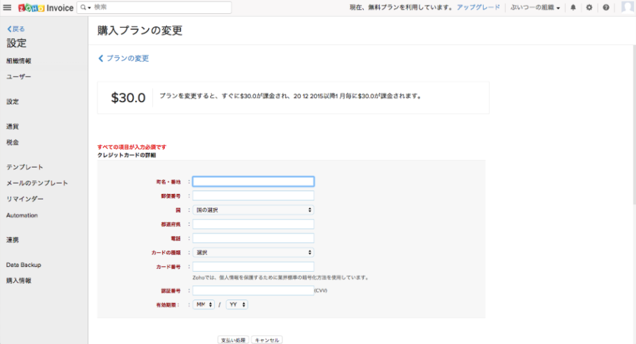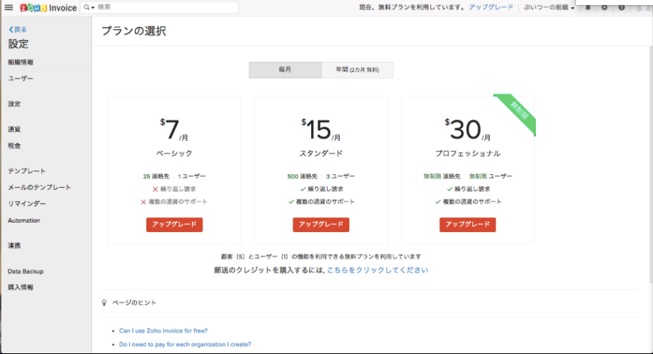 【Zoho Invoice】有料プランのアップグレード