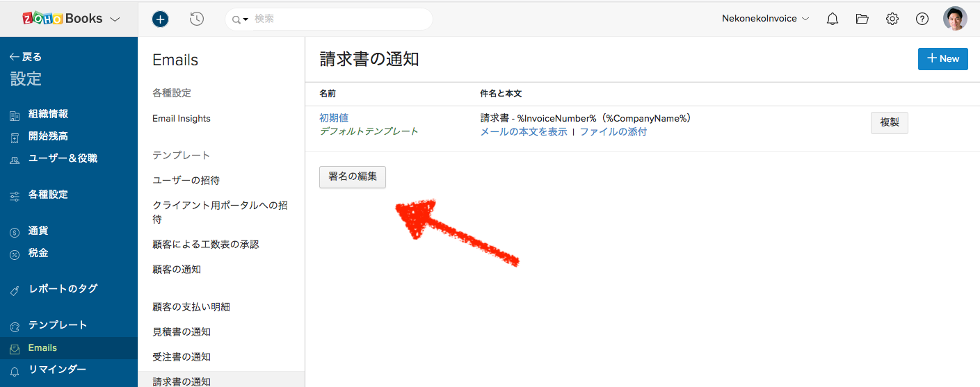 変更したい請求書へ移動します。 編集画面から請求書番号の右の歯車をクリックします。 手動/自動設定が可能です。