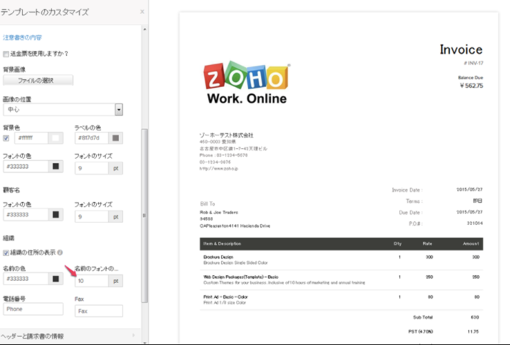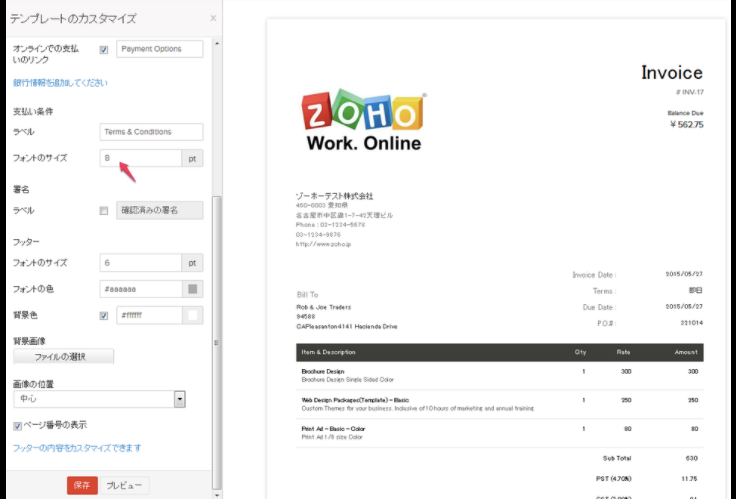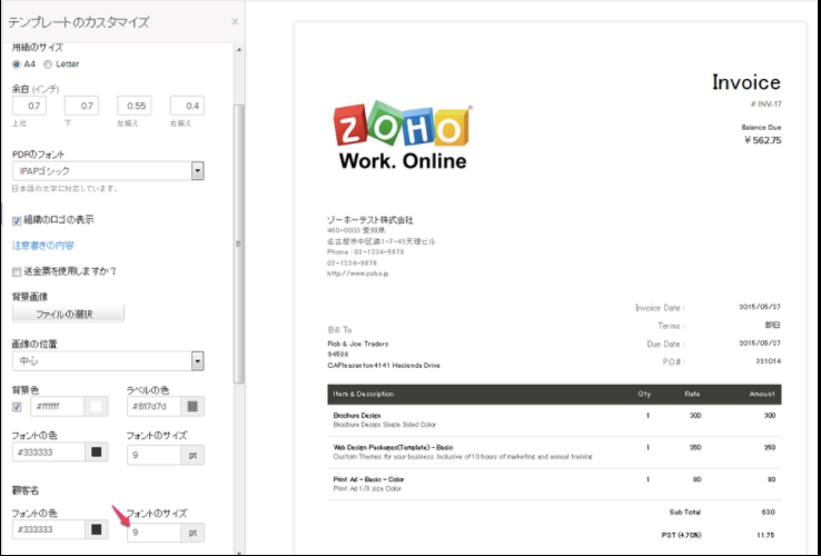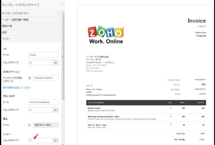 【Zoho Invoice】見積書/請求書のテンプレートフォント調整