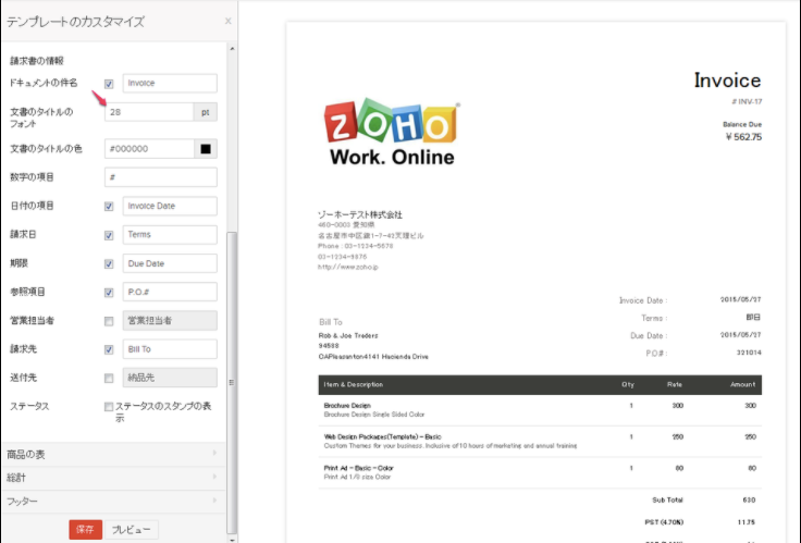 【Zoho Invoice】見積書/請求書/貸方表テンプレートを作成
