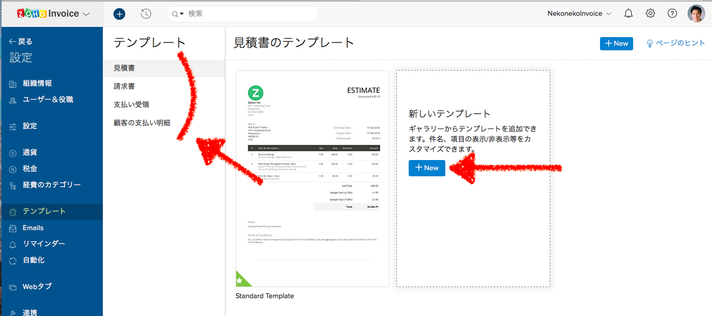 【Zoho Invoice】テンプレートの追加方法