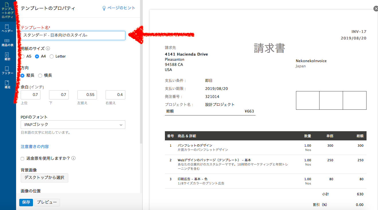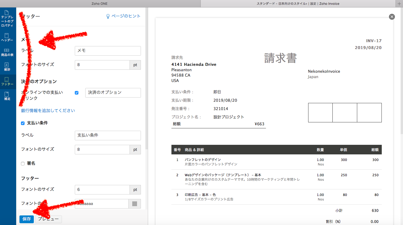 【Zoho Invoice】見積書/請求書のテンプレートフォント調整