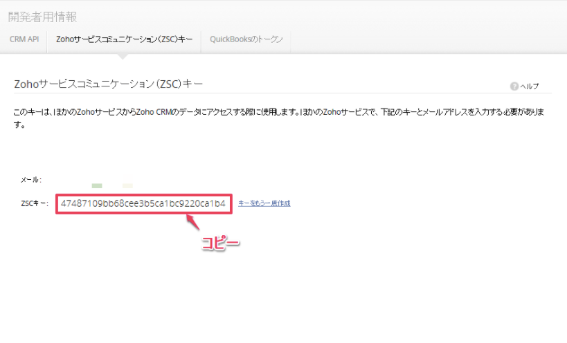 ZSCキーをコピーします。