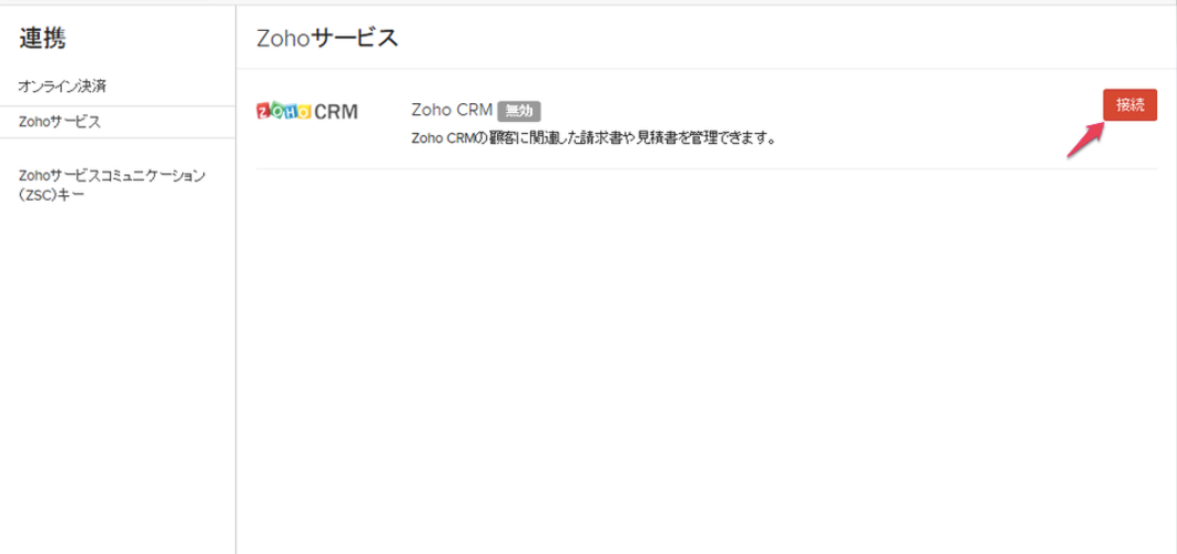 「Zoho CRMへの接続 」ページが表示されます。