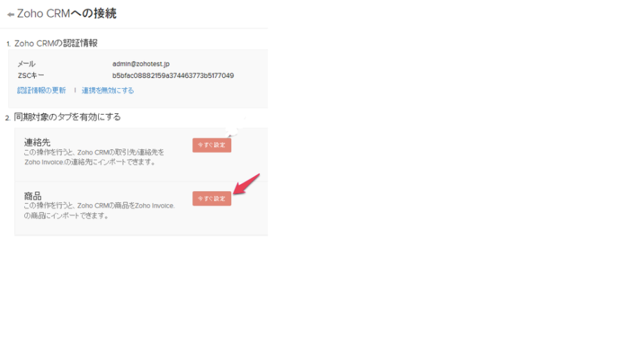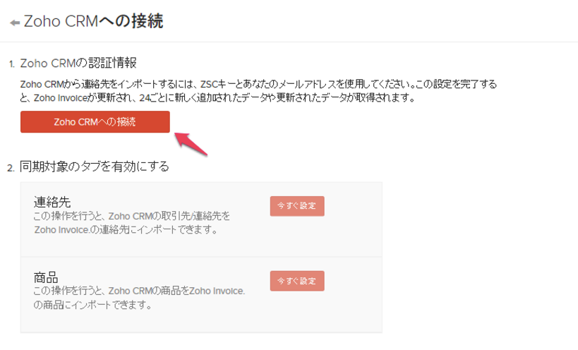 「Zoho CRMへの接続 」ページに戻ります。