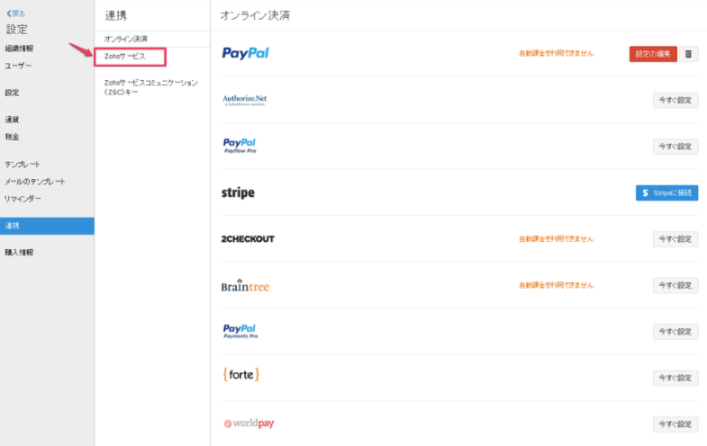 「Zohoサービス」をクリックします。