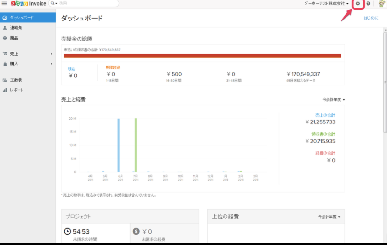 「設定」アイコンをクリックします。