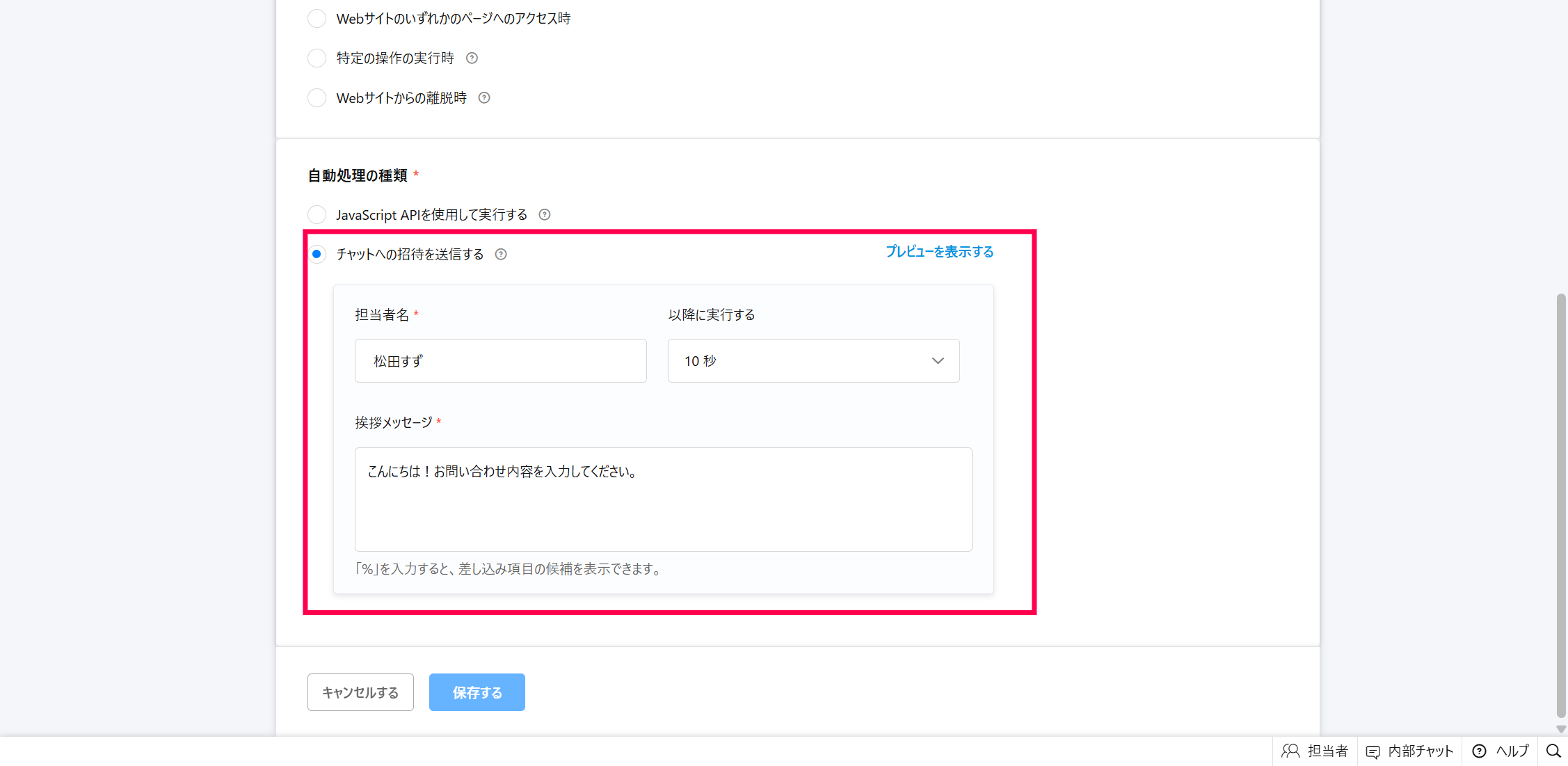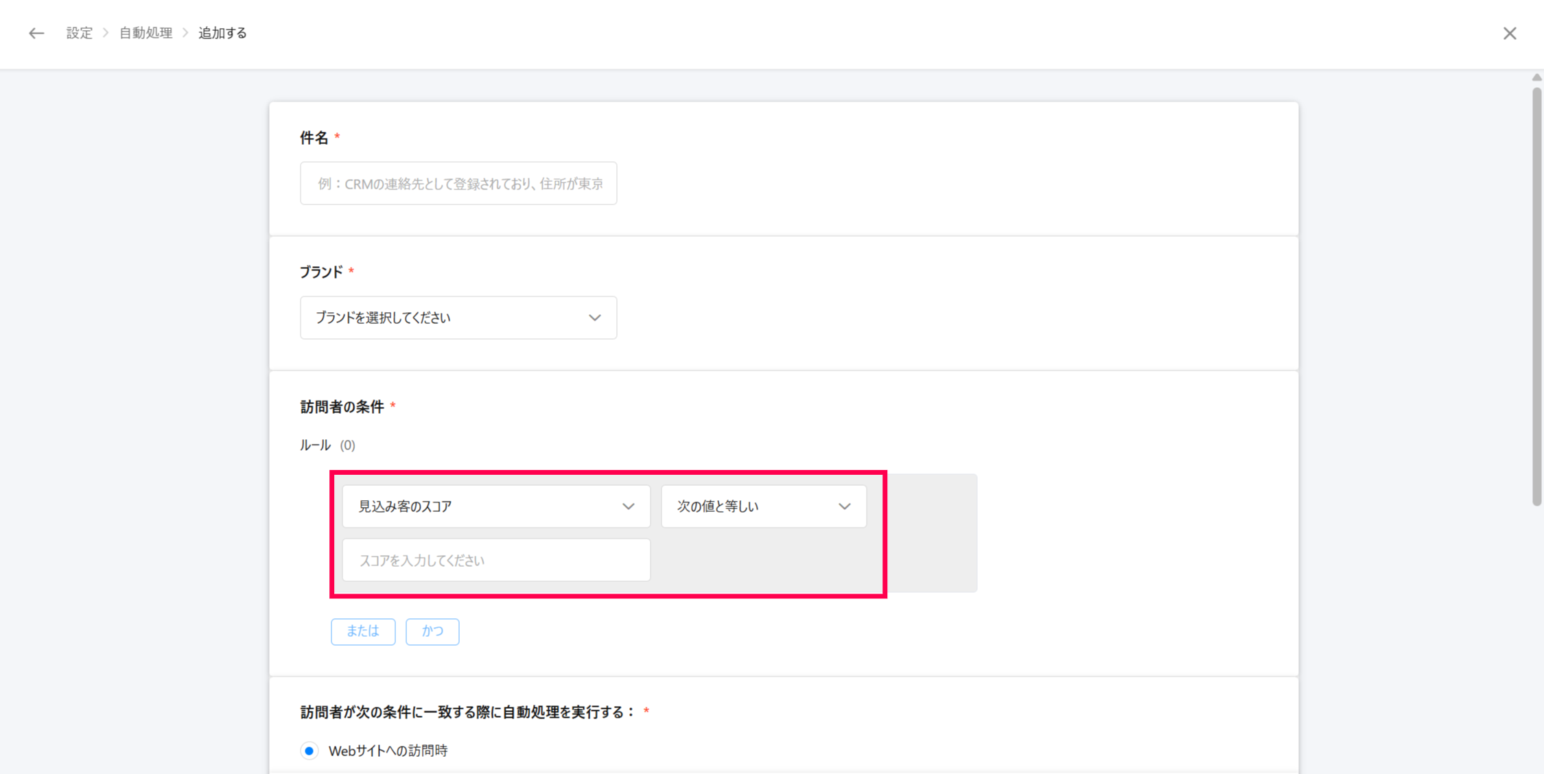 設定>自動化>自動処理画面から、スコアに応じた自動処理を実行させることが可能です。