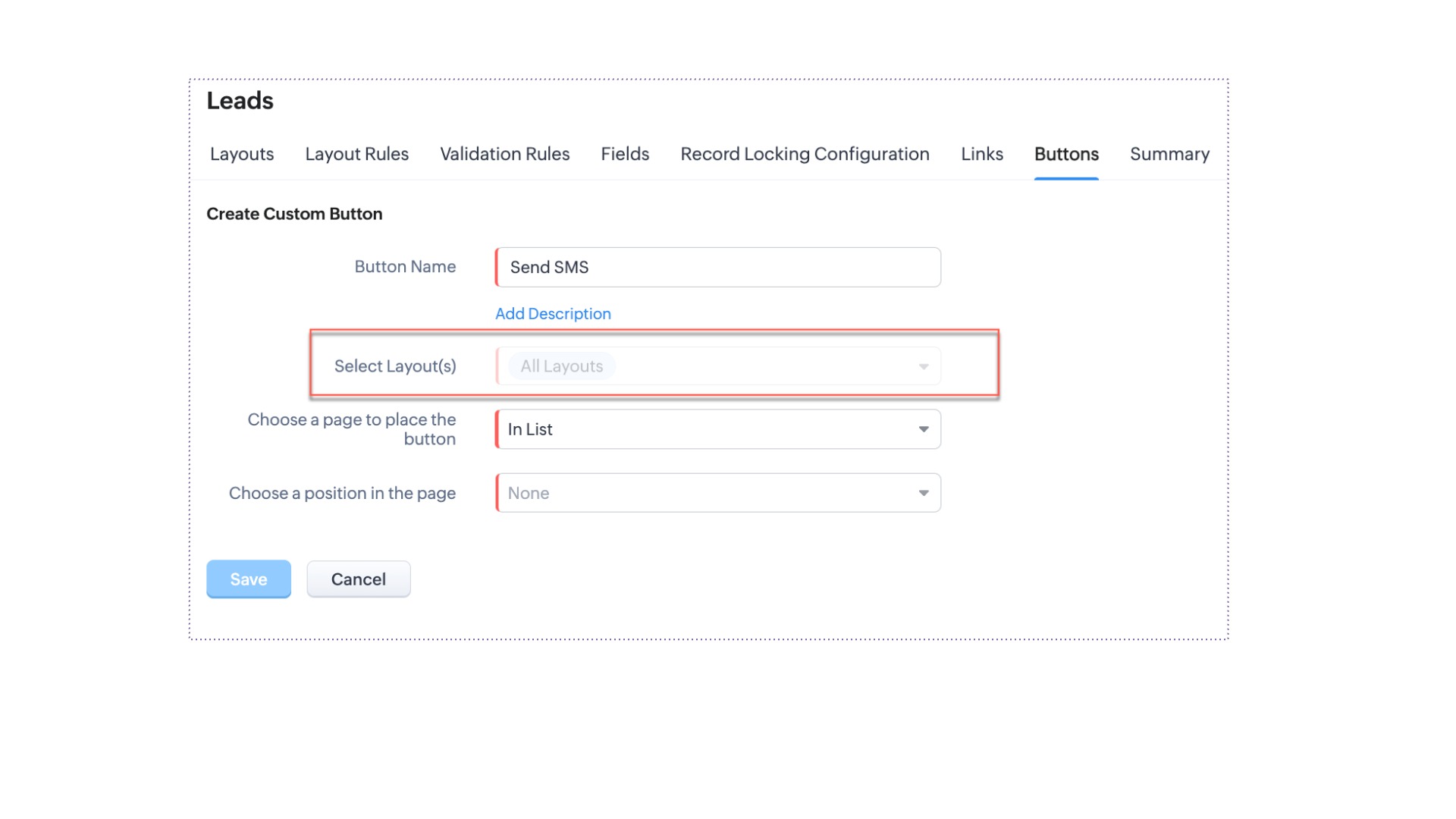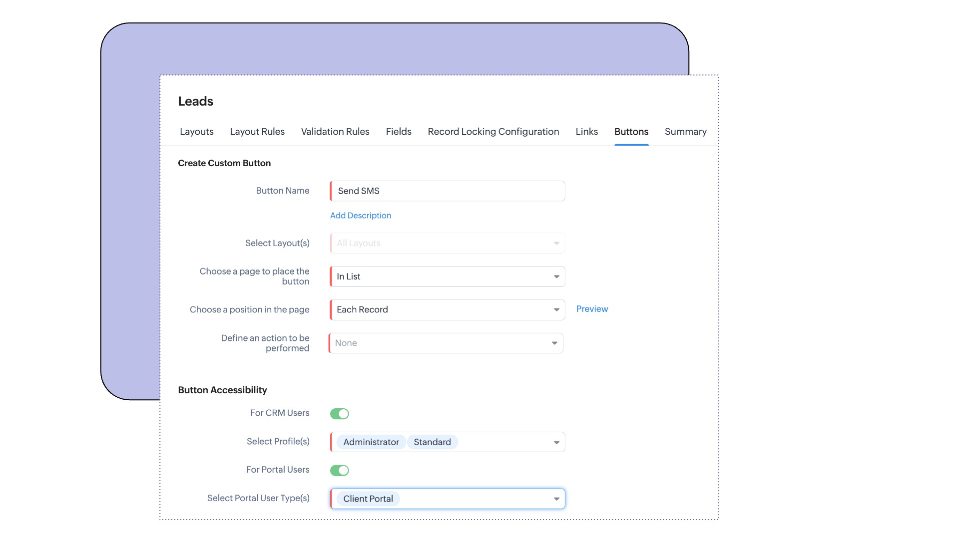 今回、各カスタムボタンの使用用途をより明確化し、カスタムボタンをよりプロセスに特化したものにするため、カスタムボタンの配置場所を選択する前に、どのレイアウトにボタンを表示するかを選択するオプションを導入しました。