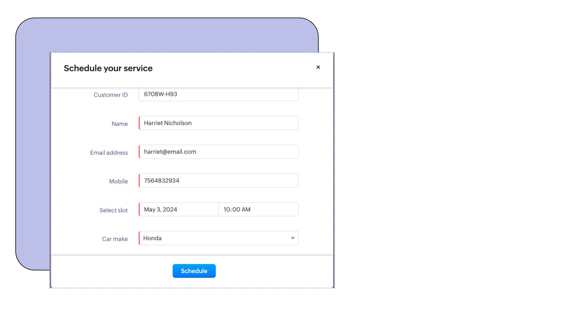 例えば、ポータルユーザーが自分で自動車に関するサービスを予約する場合を考えてみます。