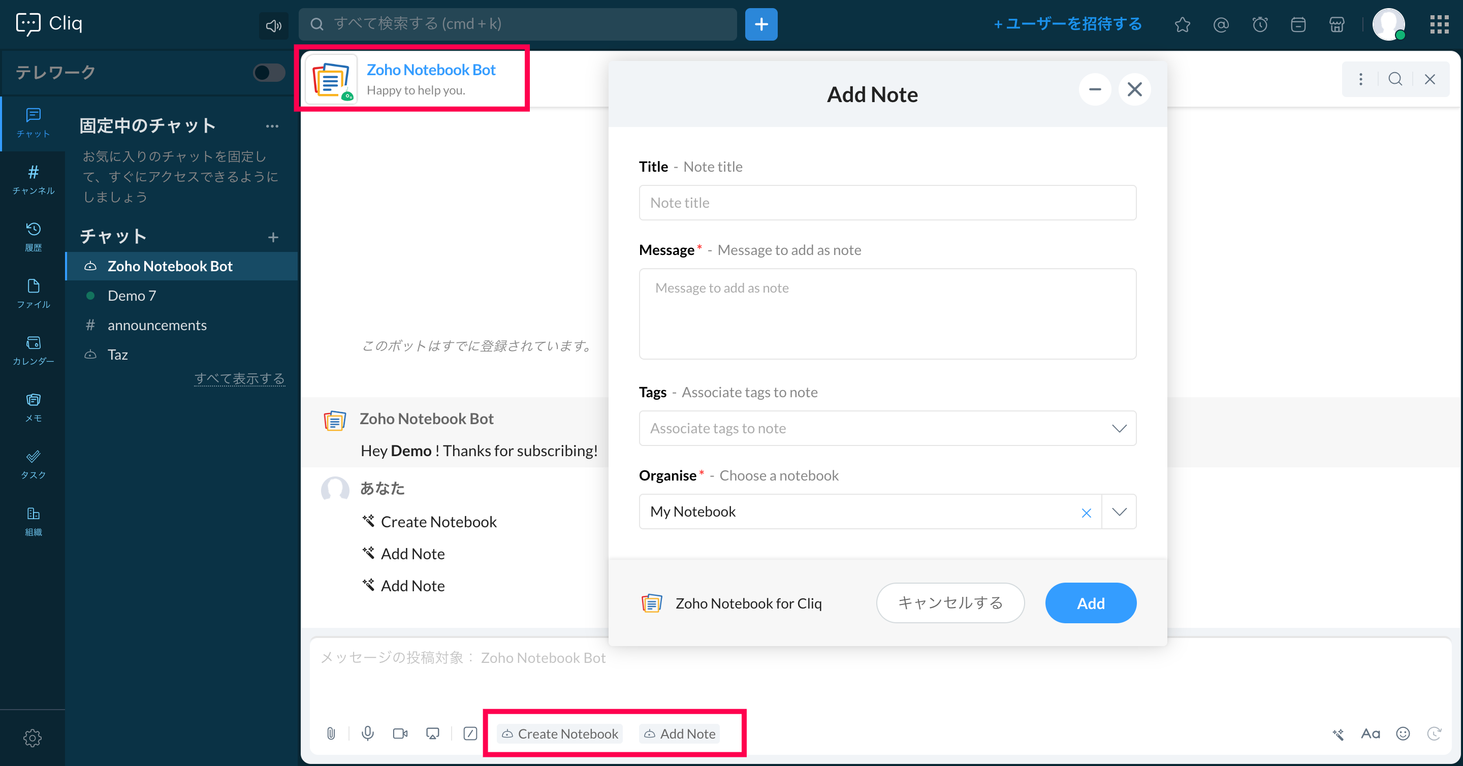 【Zoho Notebook】Zoho Cliq内でNotebookを利用するには?