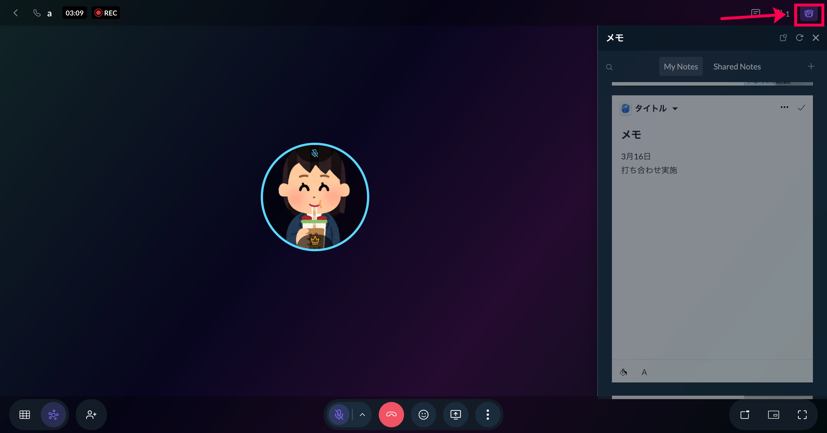 さらに、通話やミーティング中に、タブを切り替えることなくメモを取ることができます。