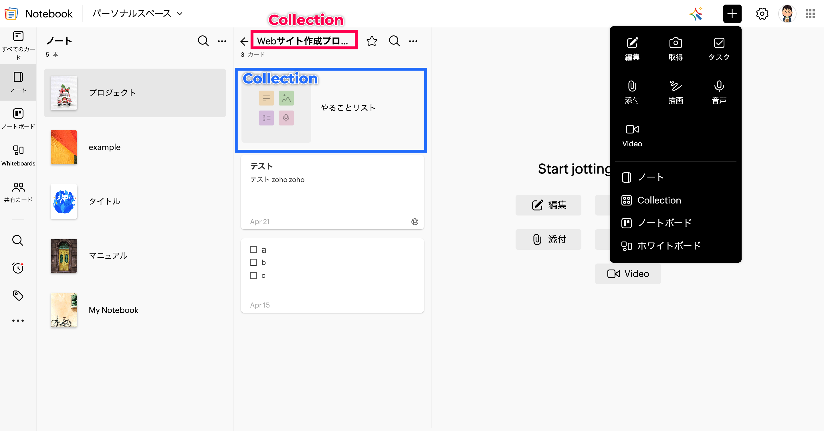 【Zoho Notebook】カードを整理したいです(Collection機能の紹介)