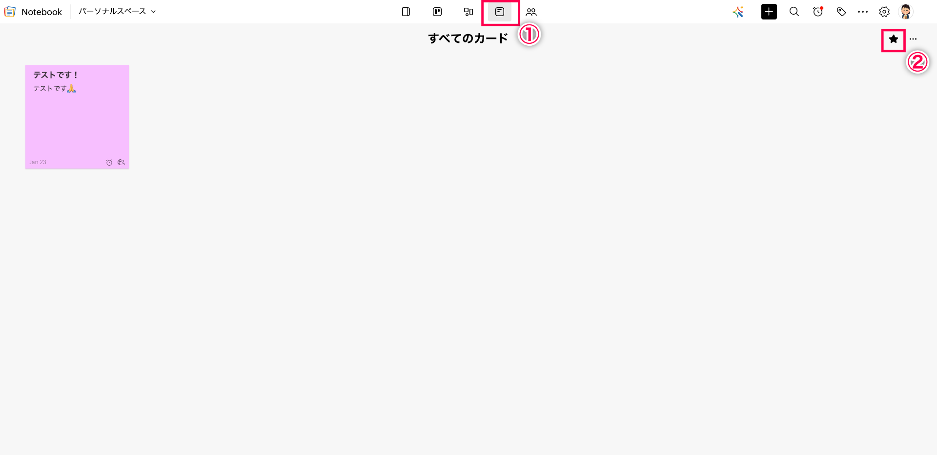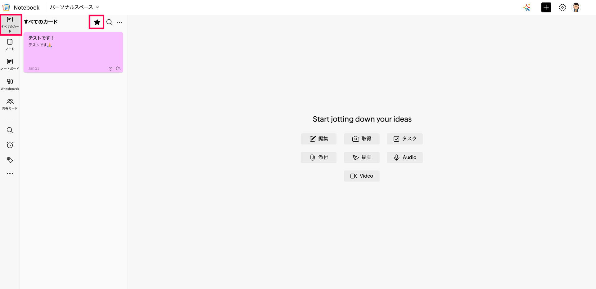 【Zoho Notebook】お気に入り登録したカードはどこから確認できますか?