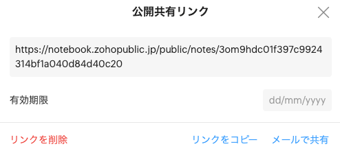 さらに、公開共有リンクに有効期限を作成したり、公開共有リンクをメールで共有することもできます。
