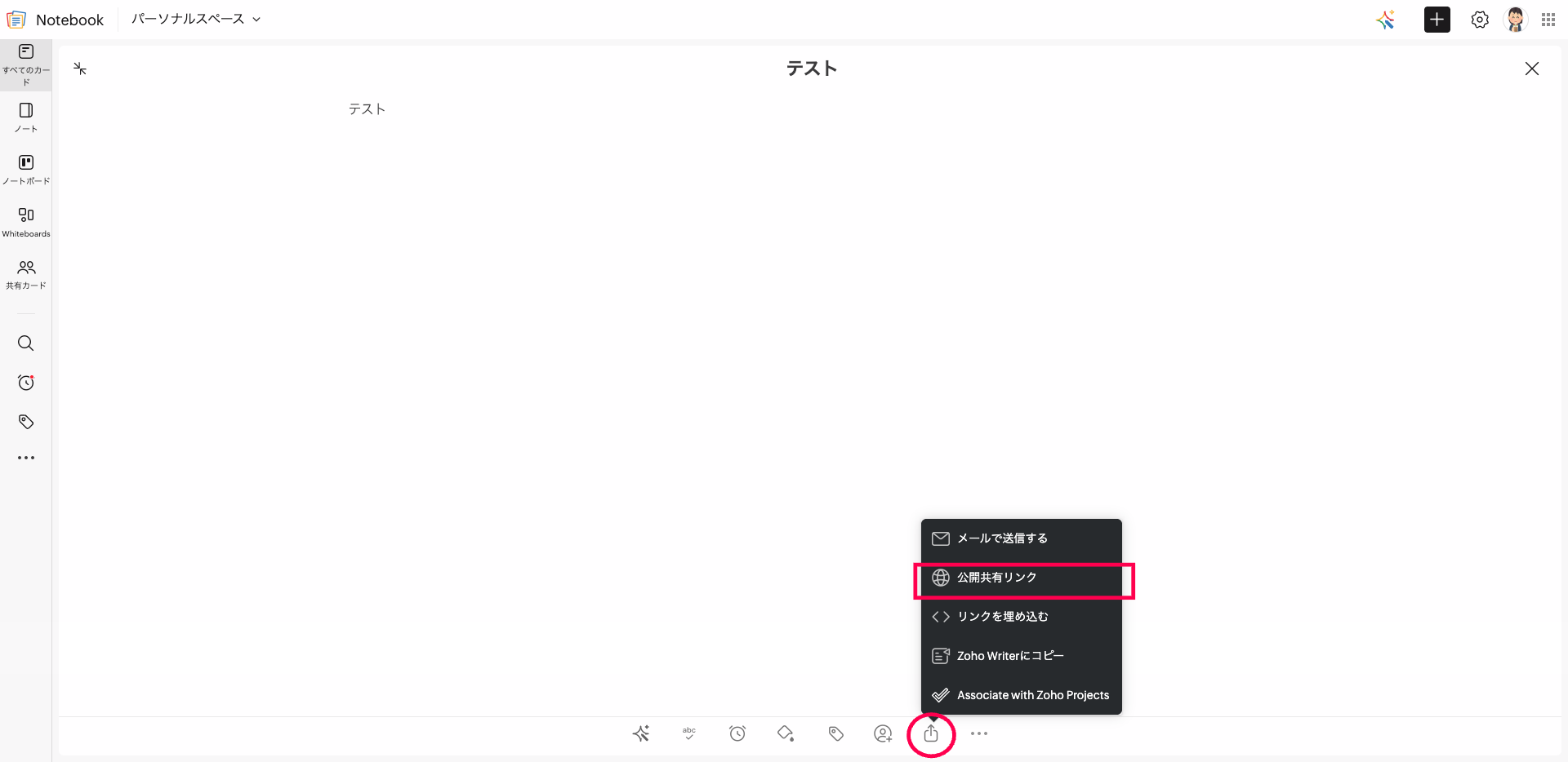 【Zoho Notebook】カードを一般公開することはできますか?