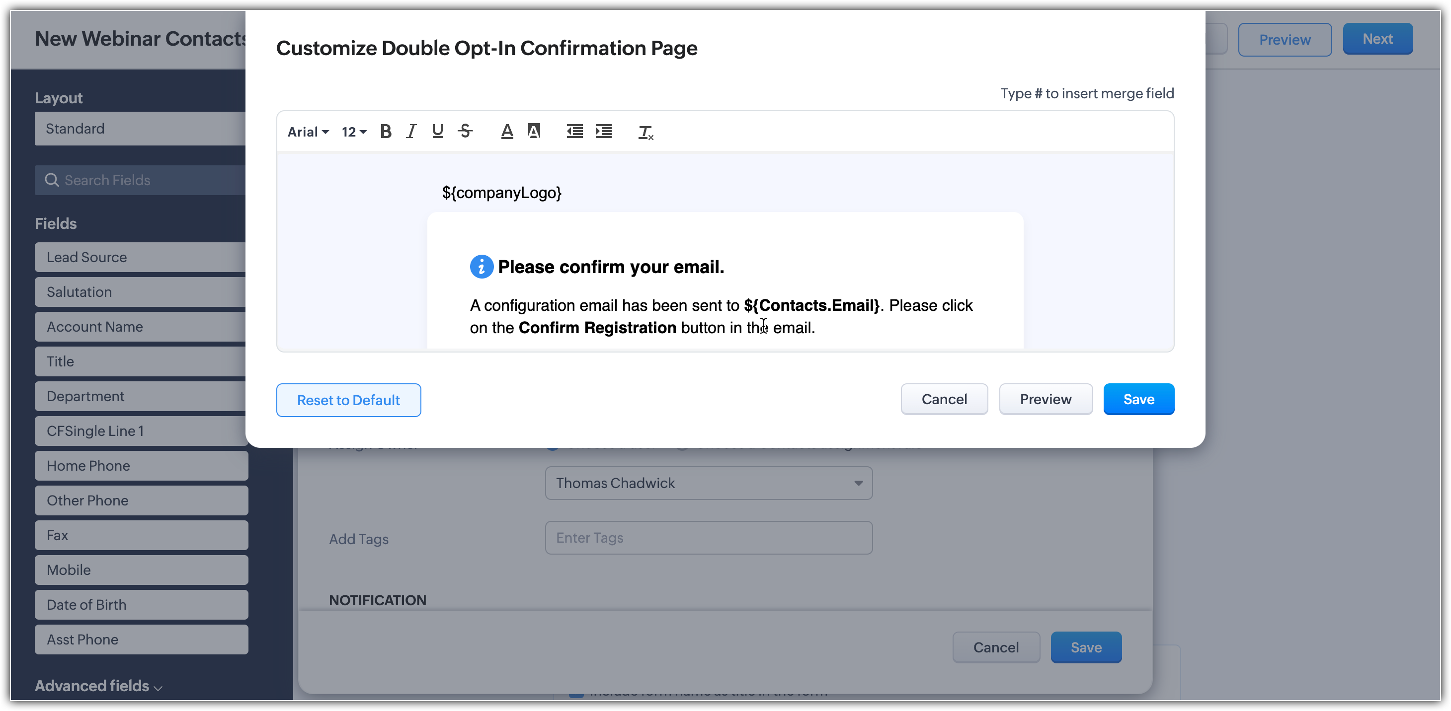【Zoho CRM】Webフォーム機能に関するアップデートのお知らせ:ダブルオプトイン(2段階の同意確認)時の認証メールや確認メッセージをカスタマイズできるようになりました。