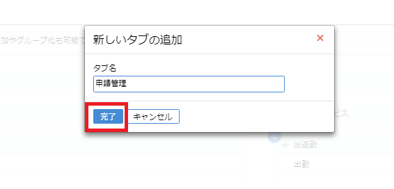 ④タブの名前を入力し、完了をクリックしてください