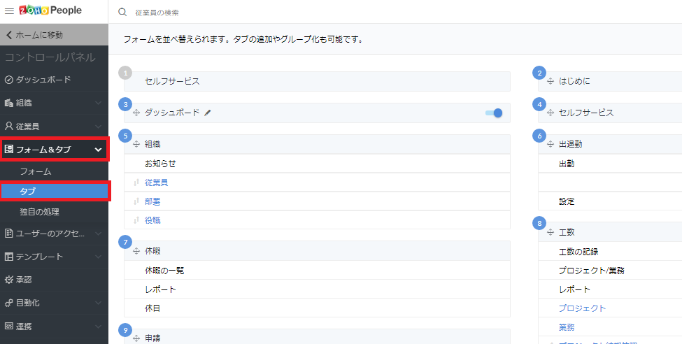 【Zoho People】 タブの追加