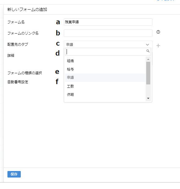 ④フォームの詳細を入力し、保存をクリックしてください