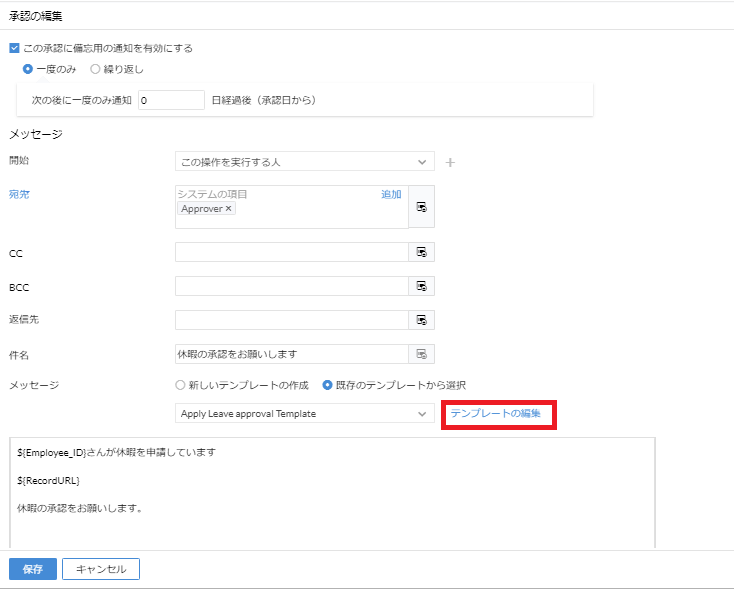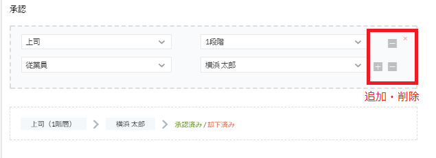 「+」「-」ボタンで承認者の追加・削除が可能です。