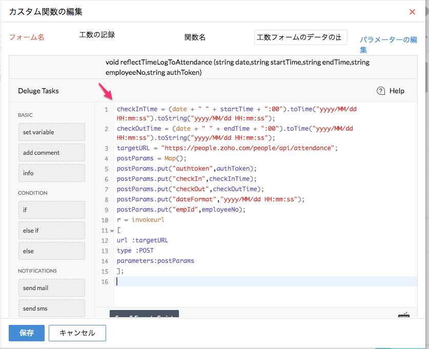 上記の設定後、関数の「保存」ボタンをクリックしてください。